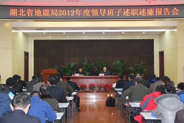 修济刚副局长一行参加了湖北省地震局2012年度领导班子述职述廉报告大会,听取了湖北省地震局党组书记、局长姚运生代表局领导班子所作的述职报告。修济刚副局长对湖北省地震局领导班子在推进防震减灾事业和落实党风廉政建设责任制等方面所取得的成绩给予了充分肯定。