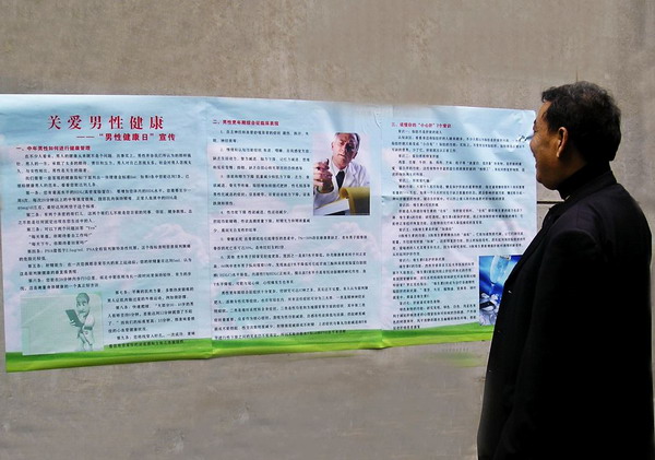2012年10月28日是国际男性健康日,我局开展了关爱男性健康的活动,并制作了主题为关注男性健康,提高生活质量展板,呼吁整个社会再多一点对男性健康的关注、呼吁每个家庭再多一点对男性健康的关爱。