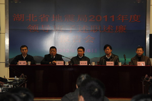 刘玉辰副局长一行参加了湖北省地震局2011年度领导班子述职述廉报告大会,听取了湖北省地震局党组书记、局长姚运生代表局领导班子所作的述职报告以及局党组成员个人述职述廉报告。刘玉辰副局长对湖北省地震局领导班子在推进防震减灾事业和落实党风廉政建设责任制等方面所取得的成绩给予充分肯定,领导班子自身建设成效突出、防震减灾重点工作成效突出、干部职工队伍建设效果突出。刘玉辰副局长从五个方面对湖北省地震局今后的工作提出了具体要求:一是要认真贯彻全国地震局长会暨党风廉政工作会议精神;二是要全力抓好规划实施,抓好重大项目立项,尽快落实和启动实施湖北省十二五规划重点项目;三是要切实抓好震情跟踪和准备工作,进一步完善防震减灾三大工作体系建设;四是要认真落实党风廉政建设责任制,扎实推进反腐倡廉各项工作;五是要不断发展壮大武汉科技创新基地的实力。