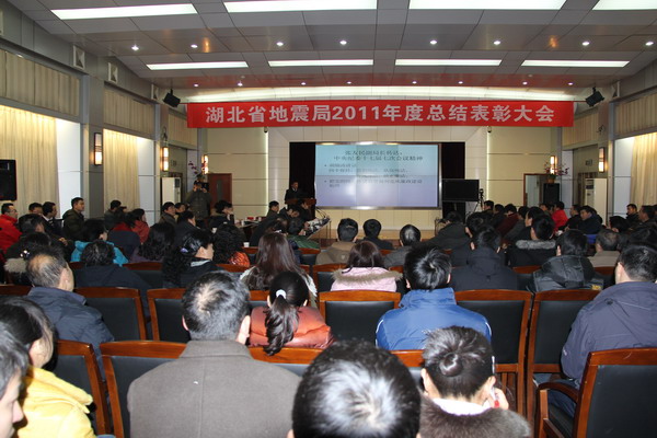 2012年1月16日上午,湖北省地震局召开了2011年度总结表彰大会,会议由吴云副局长主持,局领导和全体职工参加了会议。姚运生局长总结了一年来全局取得的成绩,对2012年的工作进行了安排部署,要求全局干部职工以更加饱满的热情,坚持防震减灾事业发展的基本思路,抢抓机遇,开拓创新,推进防震减灾事业又好又快发展。邢灿飞副局长宣读了先进集体、先进工作者、最佳文明处室、文明台站、科技成果及专利奖、地震监测成果奖、项目奖、论文奖等表彰决定。姚运生局长等局领导为获得荣誉的集体和个人颁发了奖牌、荣誉证书。