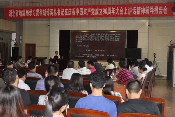 2011年7月18日,湖北省地震局举办学习贯彻胡锦涛总书记在庆祝中国共产党90周年大会上的重要讲话精神辅导报告会,邀请原省委党史研究室副巡视员方城同志作学习贯彻胡锦涛重要讲话精神辅导报告,全局90多名党员参加了会议。