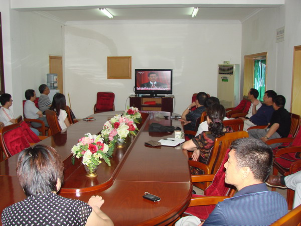 湖北省地震局组织机关干部和各党支部书记收看中国共产党成立90周年庆祝大会