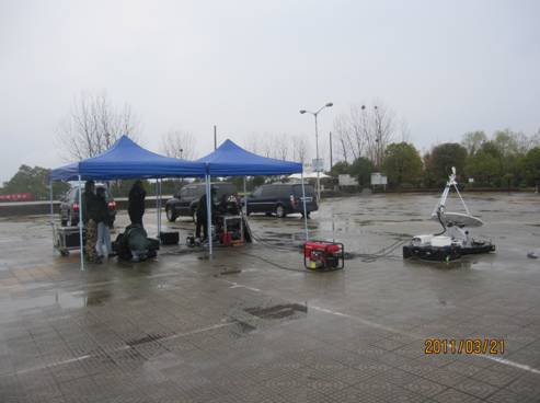 第二阶段:五省(区)地震应急指挥中心各自开展模拟地震的应急处置工作。在触发模拟地震后,应急人员迅速到岗,湖北省地震局立即派遣流动卫星通讯组赶往模拟地震震中黄陂区;在通讯组工作人员赶往震中的同时,应急指挥中心进入全面工作状态,利用专业软件生成了灾害损失初评估、辅助决策报告、产出了各种专题图,并由应急人员完成了汇报;当通讯组抵达震中、架设了卫星通讯设备后,前后方应急人员实现了视频互通,将模拟震中的震情灾情第一时间回传给了后方指挥中心。