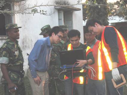 2011年2月20日,武汉地震工程研究院程邈等3位技术人员赴孟加拉国实施地质雷达管线探测作业。在孟方的大力协助下,武汉地震工程研究院的同志们克服了高温等困难,圆满的完成了工作任务,达到了预定的目标。