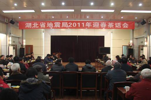 2011年1月26日上午,湖北省地震局召开了2011年迎春茶话会,局领导,各部门负责人、职工代表及离退休老领导、老专家近80人参加了茶话会。