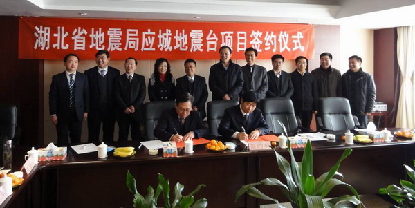 2010年12月31日,省地震局副局长吴云与应城市市长徐长水在应城市金港大酒店就省地震局在应城市建设地震台共同签署了意向协议。省地震局党组书记、局长姚运生同志,孝感市副市长王芳同志,应城市委书记出席了签字仪式。
