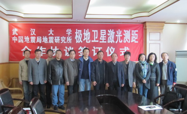 中国地震局地震研究所和武汉大学经过充分沟通协商,双方按照真诚合作、优势互补、成果共享、共同发展的原则,于2010年11月16日在武汉大学中国南极测绘研究中心签订了关于开展极地卫星激光测距的合作协议。