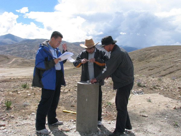 2009年3月底,陆态网络领导小组召开了青藏地区区域站建设方案讨论会,通过了由湖北省地震局大地测量室提出的青藏地区区域站建设方案。2009年4月,湖北省地震局大地测量室工程师前往格尔木与施工队会合后,开始了青藏地区区域站的建设。青藏地区28个陆态网络区域站的选建地址均处青藏高原,海拔高、氧气稀薄、昼夜温差大,施工条件异常艰难。青藏高原上水泥的凝固时间较长,作业人员经常冒着寒风和大雪以及野兽侵袭的危险,昼夜盯着观测墩,以确保安装归心盘的居中、水平和刻字效果达到最优。区域站周围人烟稀少,没有住宿和就餐之处,作业人员住在简陋的帐篷里,饿了渴了只有干粮和凉开水,脸部浮肿、感冒、肠道感染等时有发生。虽然条件艰苦,但是作业人员一直斗志昂扬、毫无怨言。经过所有人的艰苦奋斗,最终圆满地完成任务。