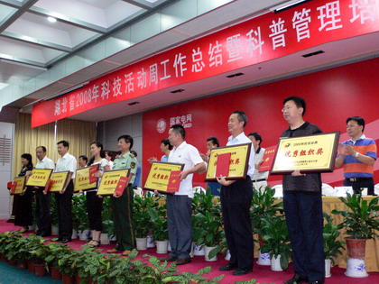 2008年8月14——15日,在湖北省科技活动周领导小组办公室召开的"湖北省2008年科技活动周工作总结暨科普管理培训会"上,省地震局等34个单位被授予2008年科技活动周"优秀组织奖",褚鑫杰等50名科普工作者被评为2008年科技活动周"先进个人"。来自全省各市、州、县科技局和部分省直厅、局等52个单位,近60名代表参加了会议。