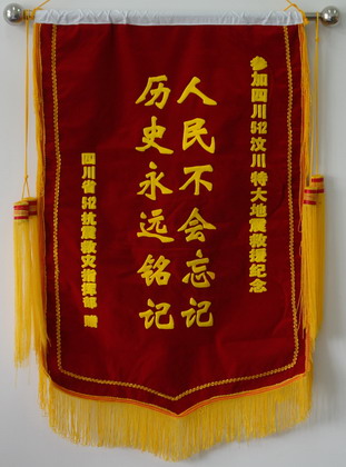 近日,四川省5.12抗震救灾指挥部为我省地震灾害紧急救援总队颁发了印有"人民不会忘记、历史永远铭记"的锦旗,表达四川人民对我省全力支援抗震救灾工作的诚挚谢意。