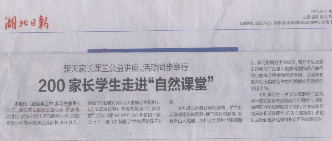 9月12日,省灾害防御协会与湖北日报楚天家长课堂共同开展了校外实践“自然课堂”进台站活动。