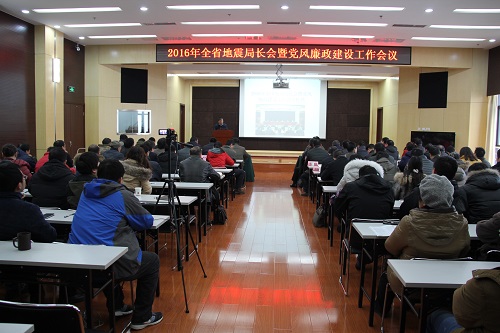 1月22日上午,湖北省地震局召开2016年全省地震局长会暨党风廉政建设工作会议,传达学习2016年全国地震局长会暨党风廉政建设工作会议精神。湖北省地震局领导班子全体成员、各市州及部分县级地震局(办)主要负责人、局下属各单位中层干部、副高职称以上科技人员、机关全体人员共100余人参加了会议。会议由湖北省地震局副局长吴云主持。