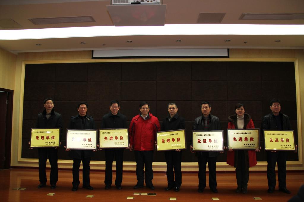 邢灿飞副局长宣读了2015年度先进集体、先进工作者、最佳文明创建结果等表彰决定,通报了全国、全省防震减灾工作综合考评结果以及地震监测成果奖、项目奖、成果奖、论文奖等情况。姚运生局长等局领导为获得荣誉的集体和个人分别颁发了奖牌、荣誉证书。