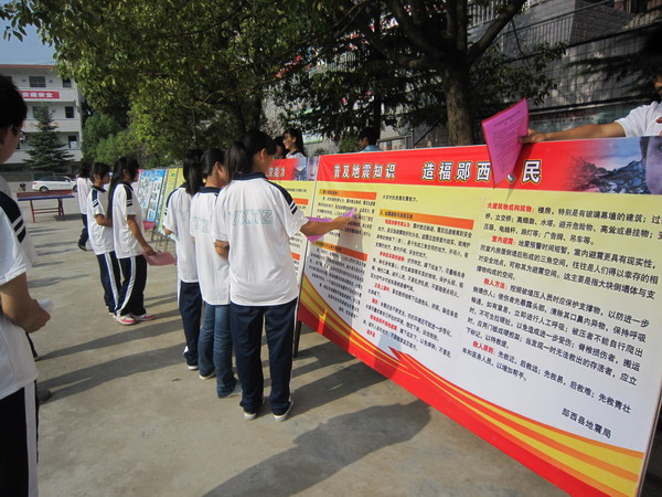 县地震局作为科普知识宣传单位之一,在指定的地点布置展区,排放宣传展板,设置地震知识咨询台,摆放宣传单。在地震知识展区,学生一边收集地震知识宣传单,一边交谈着他们自己掌握的地震常识。两个多小时的宣传活动,地震局共发放宣传单500多份,接受咨询20余人次,展示展板两块,宣传取得明显效果。