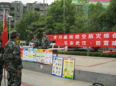 全区各街道和高校,结合各自实际,积极开展了形式多样的防震减灾宣传活动。狮子山街不仅特邀市办专家为全街工作人员和各社区主干上了一堂防震减灾知识课,同时在其珞狮路社区结合消防安全组织社区居民听取了一堂防灾减灾知识课。洪山街、关山街以《湖北省防震减灾条例》实施为契机,在人居集中地段组织一次集中宣传活动,宣传民防法律法规,发放防灾知识宣传单和防震知识手册3000余份,吸引了社区居民广泛参与。梨园街和卓刀泉街开展了实战演练,两街道分别在其管辖的华腾园社区和关西社区组织了七个专业队及上百居民参与的防空防震综合演练。同时,在演练现场向到场观看的居民群众发放《民防法律法规汇编》、《防震知识手册》和《防空防灾知识宣传单》等宣传资料上千份,增强了居民的防震意识和常识,通过观看演练提高了应急自救能力。