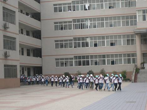 10点40分,随着安全警报的拉响,同学们在演练领导小组工作人员的指挥下,完成了地震应急避险室内演练,然后按照正确的疏散路线和顺序迅速撤离到应急避难场所集合,2200名师生参加了示范演练活动,整个过程用时3分30秒,整个活动规范、撤离组织有序,达到了预期的示范效果。