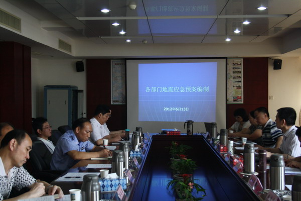 为提高武汉市地震应急处置能力,进一步推进全市地震应急预案建设,2012年6月13日上午,武汉市地震办召开了市防震减灾领导小组成员单位地震应急预案编制工作会议。市发改委、经信委、交委、城乡建设委、教育局、卫生局、公安局、财政局、民政局、供电公司、水务局、武汉武警支队等17个成员单位的领导参加了会议。