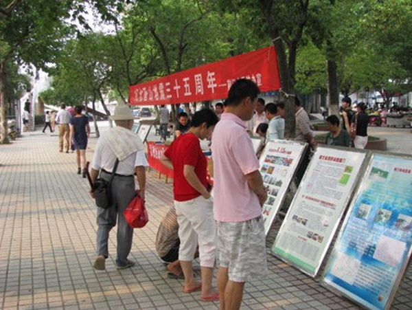 活动现场群众驻足观看展板