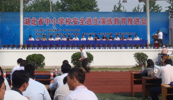 为增强中小学校的安全意识,提高中小学生的安全逃生技能,提升中小学校应对突发公共安全事件的协调指挥能力,由湖北省教育厅,黄冈市人民政府主办,团风县政府,黄冈市教育局、公安局、地震局、消防支队承办的湖北省中小学校安全逃生演练教育活动推进会于5月12日上午在黄冈市团风县实验小学举行。