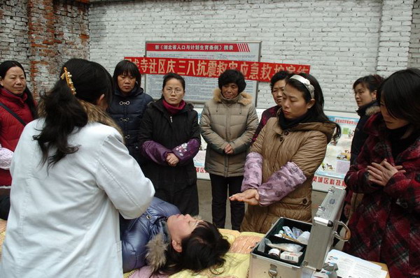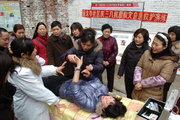 襄樊回龙寺社区开展地震应急自救互救培训演练