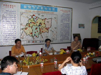 8月19日,襄樊市科技局局长乔海林一行来我局调研防震减灾工作情况。乔局长一行认真听取了市地震局钟翔局长的工作汇报,充分肯定了近年来襄樊市地震局在防震减灾工作中取得的显著成绩,对市地震局今后的工作提出了四点要求,一是进一步提高地震监测预报能力;二是加快防震减灾中心建设;三是加强防震减灾知识的宣传;四是加大向上级领导汇报争取项目的力度。