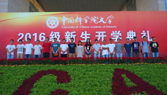 在八月的尾巴上,在秋风微至的雁栖湖边,我所的19位研究新生相继到达校园,他们怀揣着对科学的好奇,对生活的热情来到学校,也是因为他们的活力与激情使校园里更加生机勃勃。8月31日的清晨,在国科大图书馆门口举行了2016年新生入学开学典礼,他们认真聆听了老师们叮嘱后,集体留在典礼场地留影。这一次的合影,不仅是一种留念和仪式,更是一种能让他们铭记对科学事业奋斗初心的方式,也是地震研究所这19位新同学即将开始新的研究生生活的标志。在本次合影中,大家为解决拍照时遇到的一些小困难上,一起想办法的过程中也增强了集体的荣誉感和同学们之间的感情。