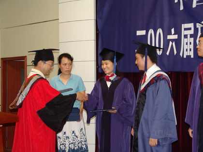 龚平副所长(左一)向06届毕业生颁发毕业证书