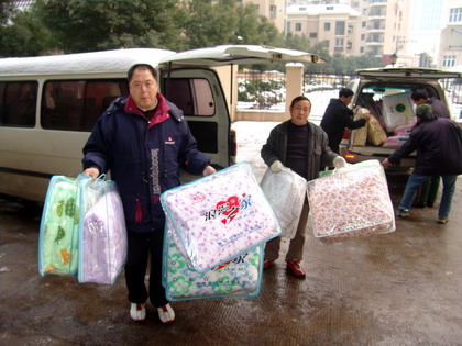 元月30日下午3时54分时,省地震局接到省直机关工委要求紧急捐赠御寒棉衣、棉被的电话通知后,局党组号召机关干部职工,发扬扶危济困的中华民族传统美德,积极向灾民捐款,帮助灾民在大雪纷飞的寒夜里睡个暧和觉。局工会、后勤服务中心迅速组织有关人员将募集的捐款购置御寒棉被,及时送到省备灾中心,为受雪灾的群众献上了一份浓浓的爱心。