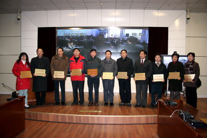 大会表彰了2007年度本单位评选出来的4个先进集体、7个先进个人、8个最佳文明处室、3个最佳文明台站。局领导为获得荣誉的集体和个人分别颁发了奖状、荣誉证书。同时对2007年度获得上级单位表彰的先进集体、先进个人以及科技、监测人员获得的科技、监测成果奖、论文奖进行了表彰。